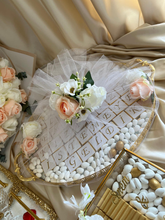 Söz kesimi esnasında makas ve kurdelenin sunumunun yapıldığı söz kesim tepsisi ile...