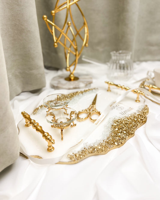Taşlı Epoksi - GOLD - Tepsi Seti