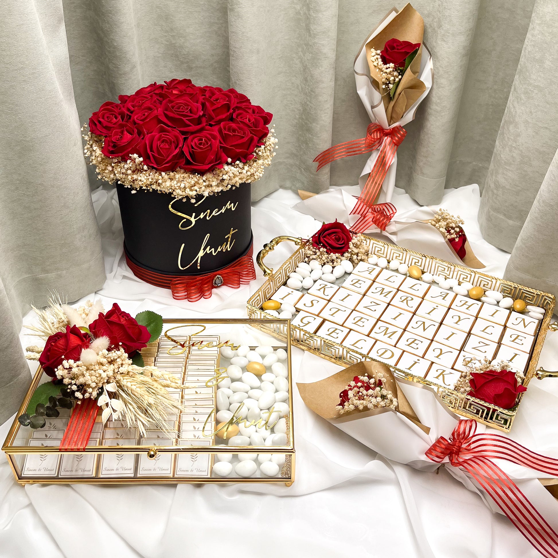 Hinweise: Muttersträuße und Perlenband sind nicht im Preis inbegriffen. Sie können es aus den Menüs „Blume & Schokolade“ und „Song Cutting Set“ hinzufügen.