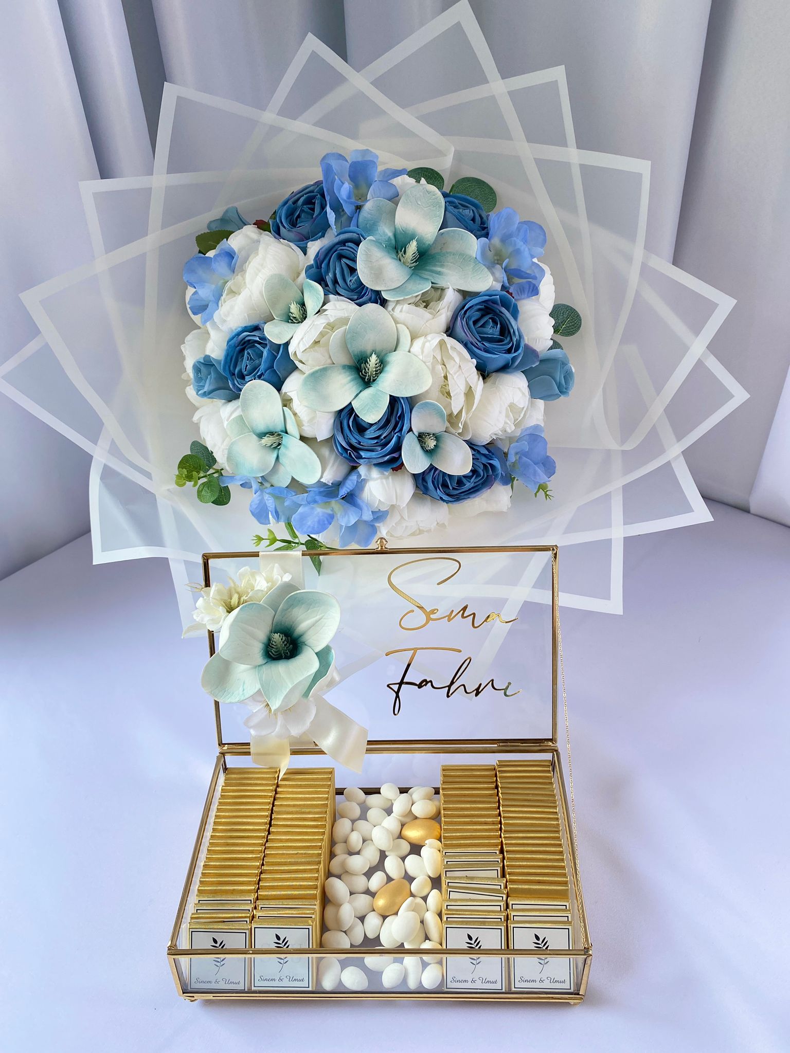 80 adet çikolata/draje ile hazırlanmış cam kutudan