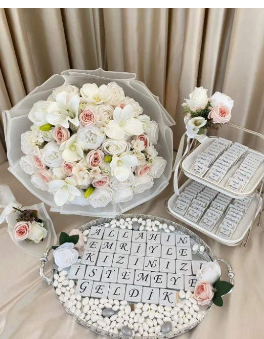 36 adet çikolata ile hazırlanmış Allah'ın emriyle kızınızı istemeye geldık yazılı tepsi