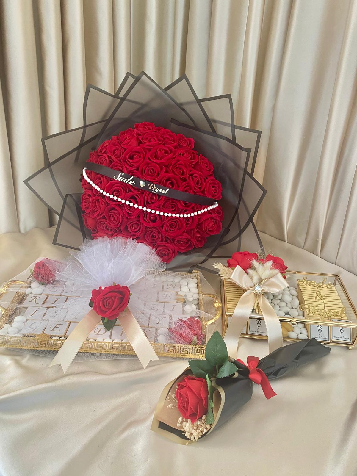 41 adet kadife gülle hazırlanmış buket