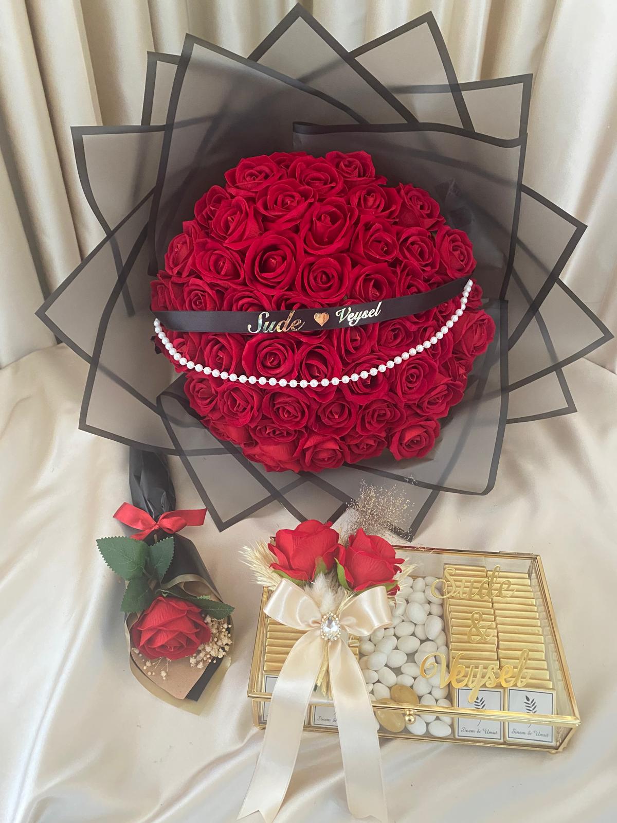 41 adet kadife gül ile hazırlanmış buket,