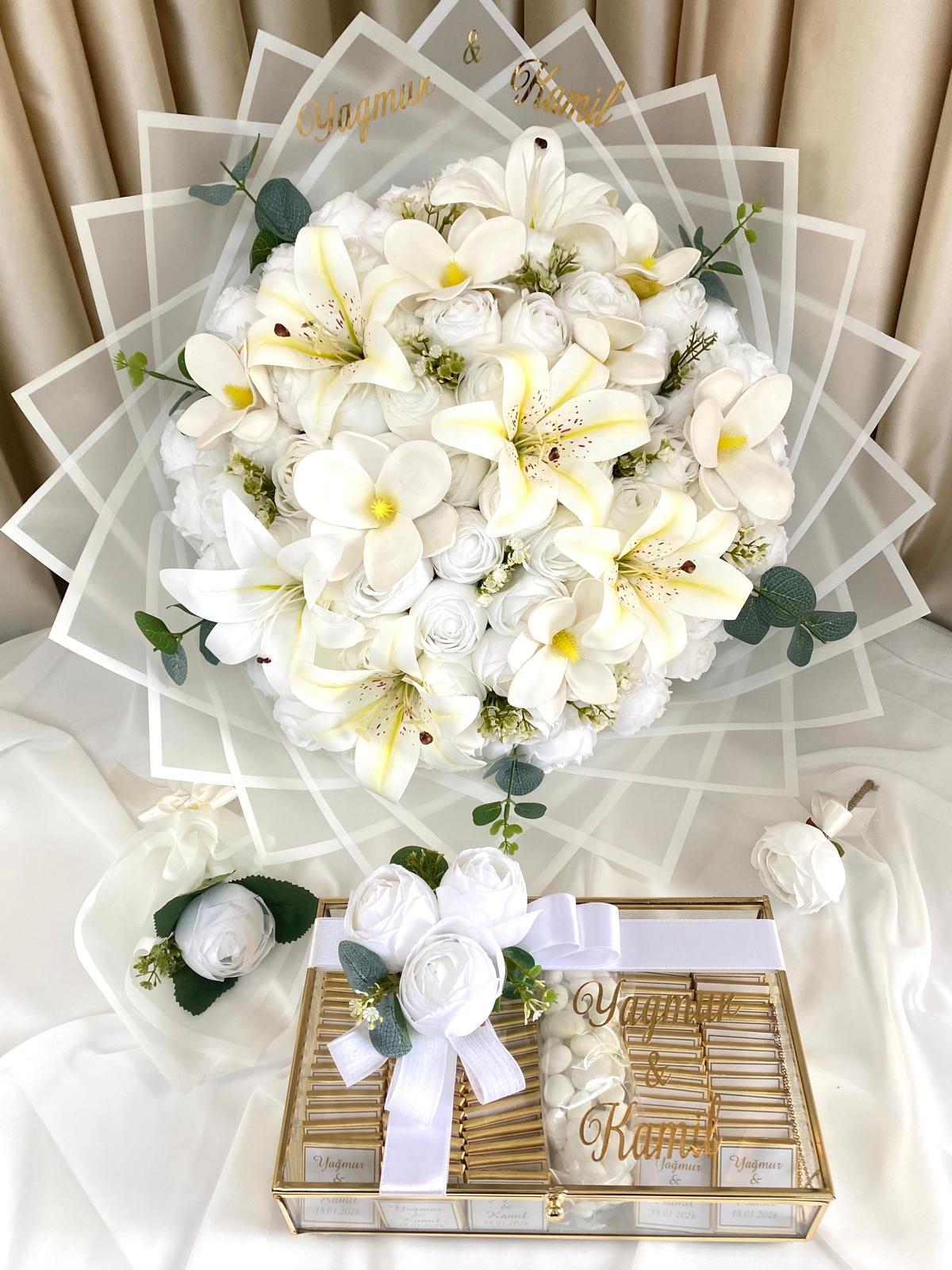 101 şakayık,lilyum,manolya ile hazırlanmış buket