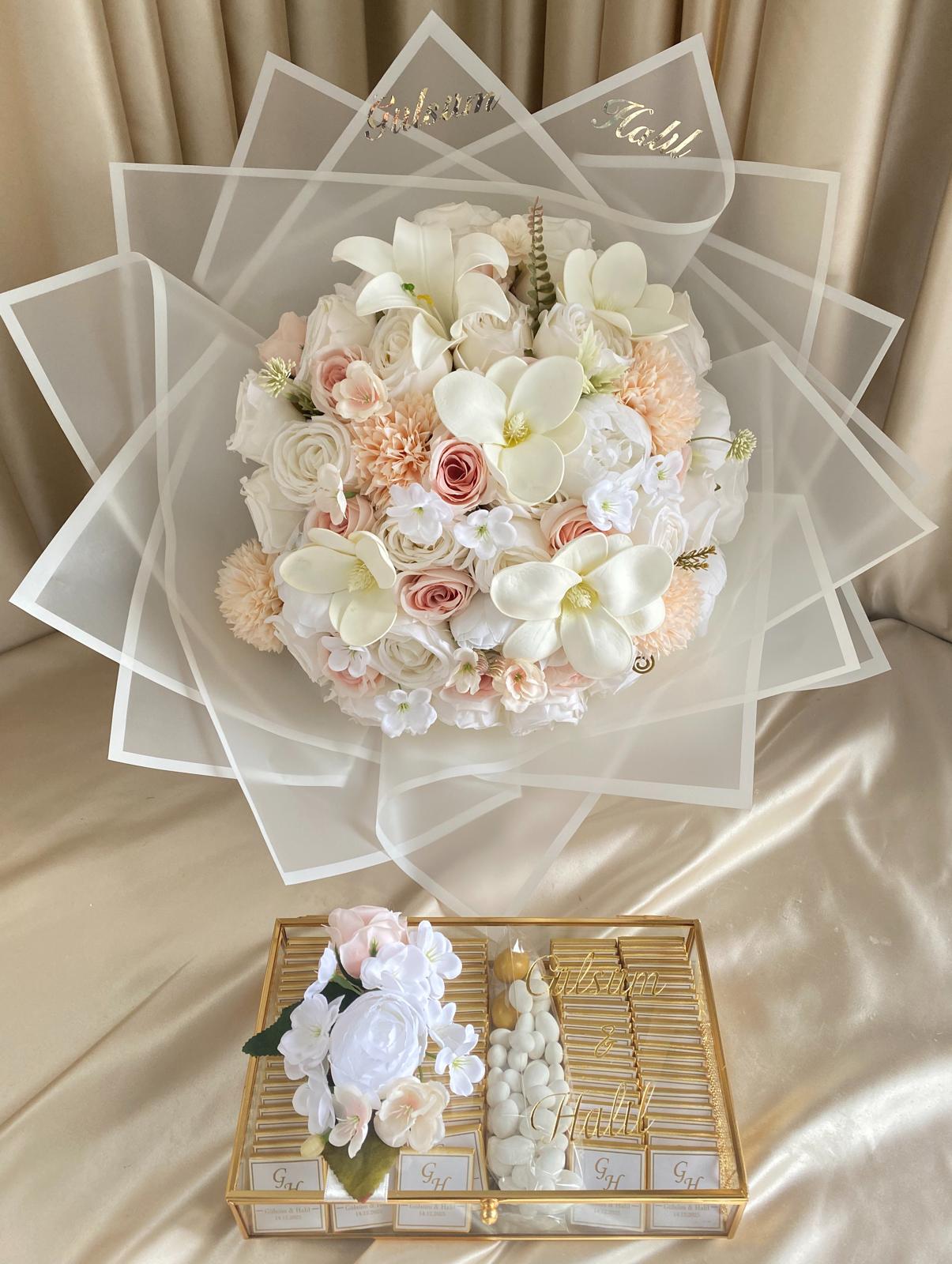 Setimiz manolya gül şakayık ve karanfil ve lilyumla hazırlanmış buket,