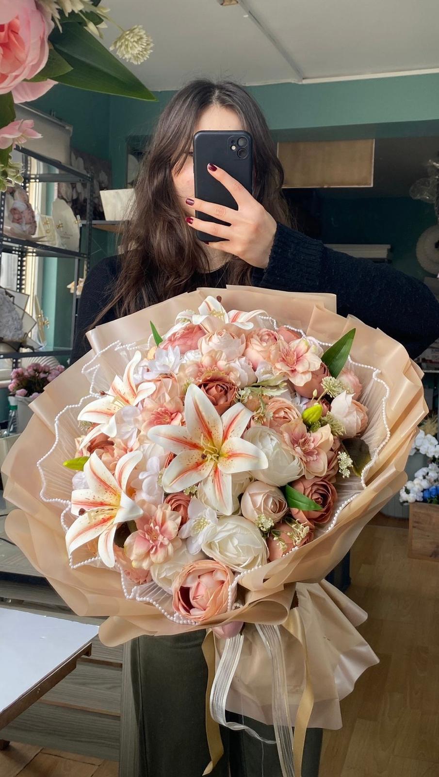 gül,şakayık,lilyumlarla hazırlanmıştır