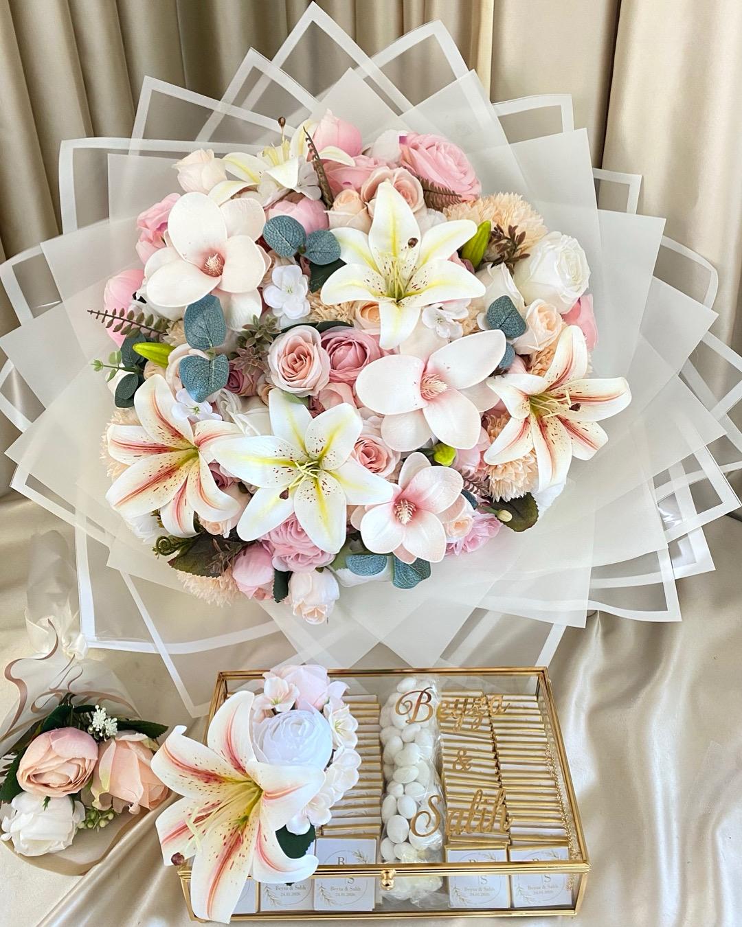 Çeşitli çiçekler ve lilyumlarla hazırlanmış buket,