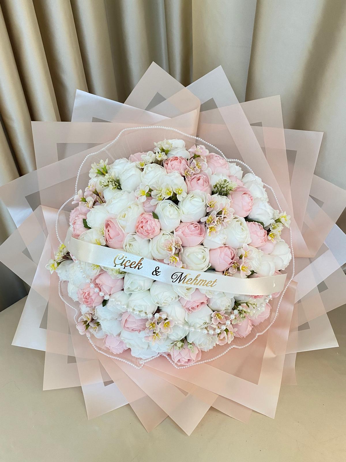 191 pembe ve ekru şakayık ve çeşitli ara çiçeklerle hazırlanmıştır