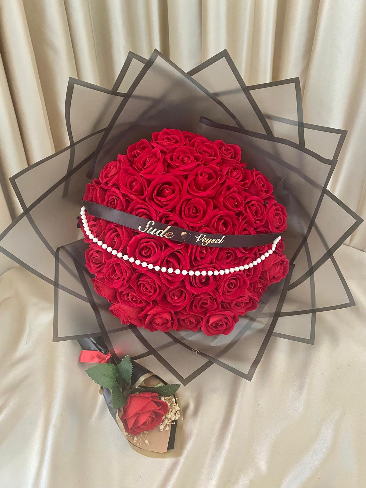41 ADET KADİFE GÜLLE HAZIRLANMIŞTIR