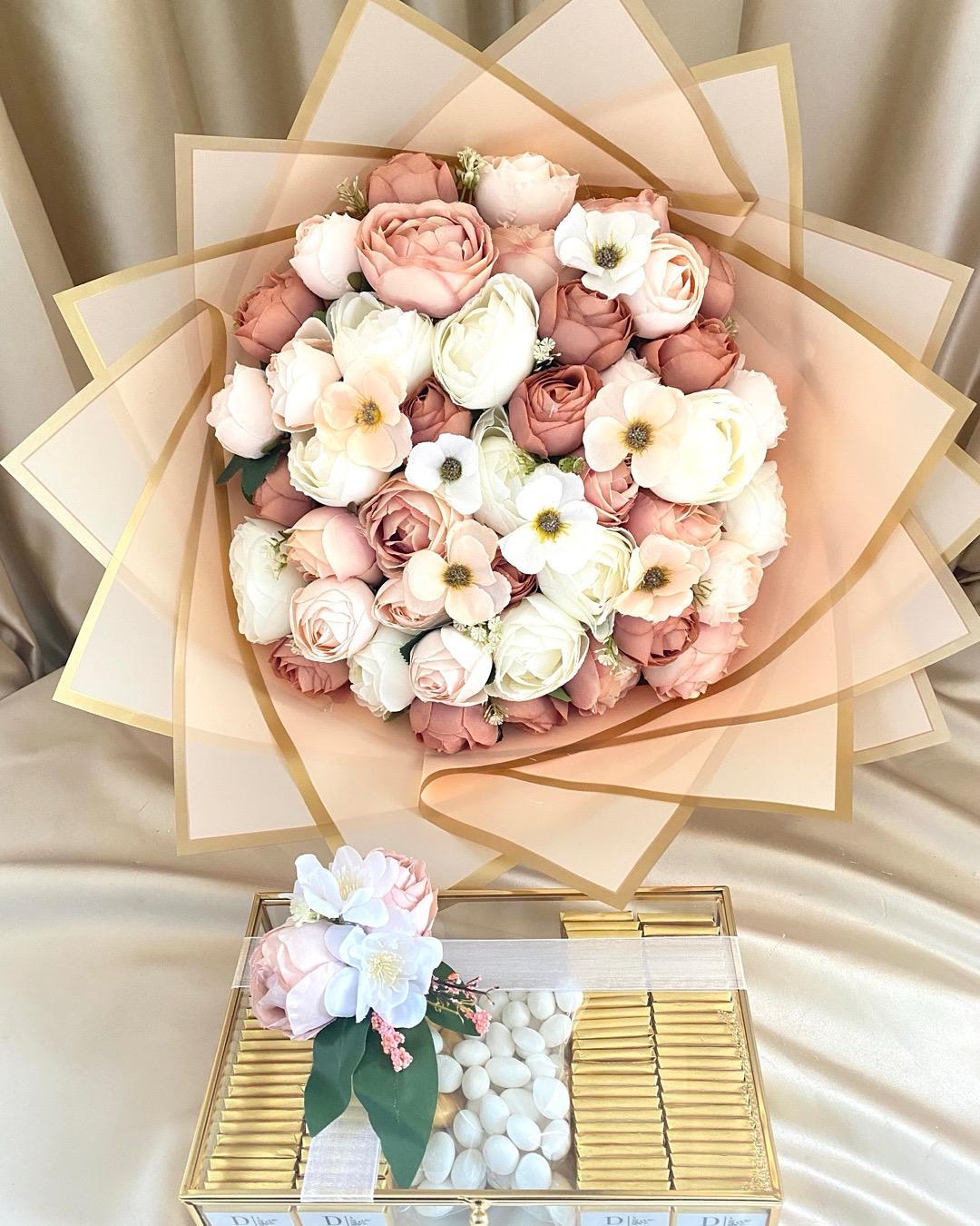 45 Adet şakayık ve çeşitli çiçeklerle hazırlanmış buket