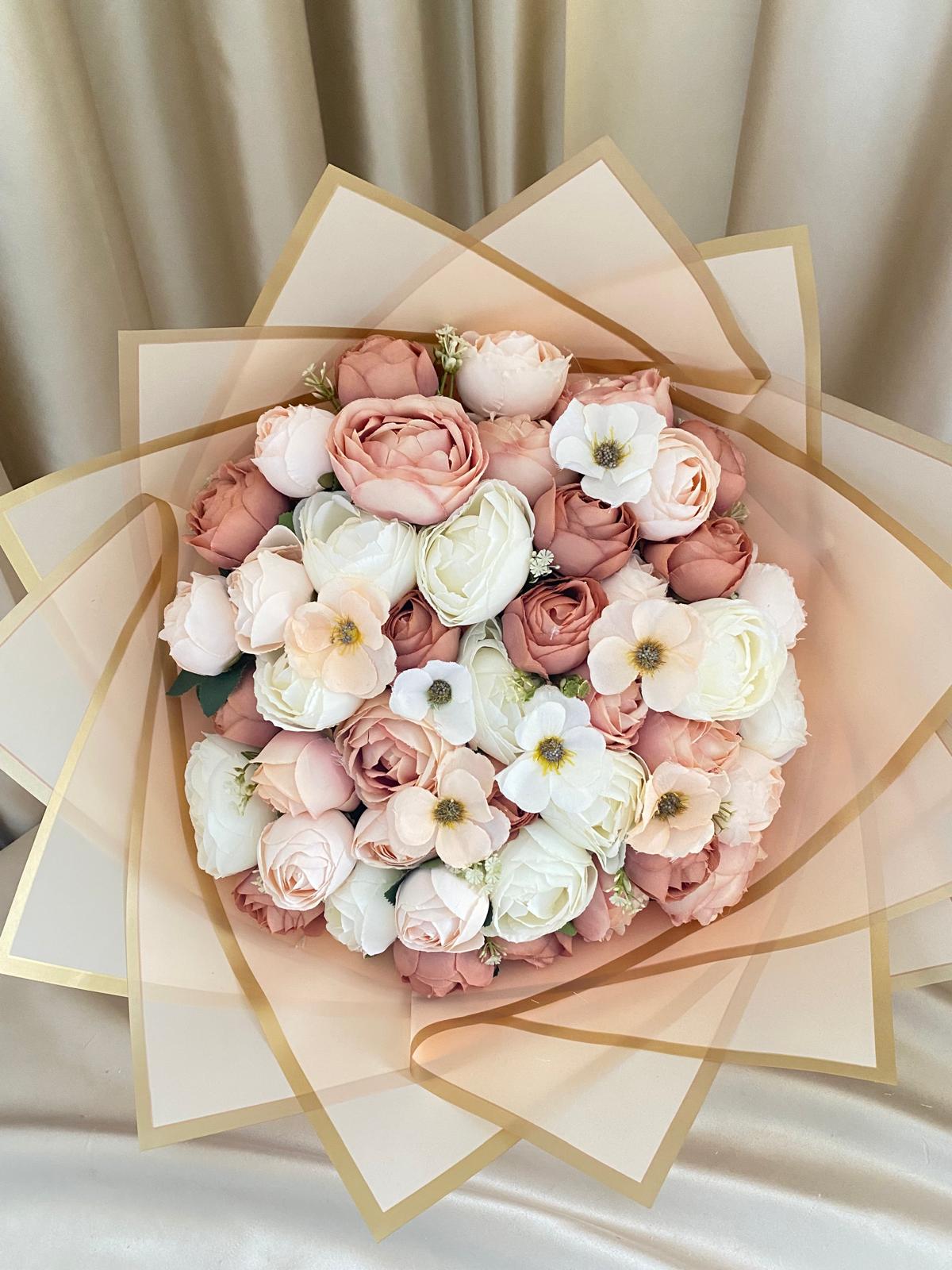 45 adet şakayık ve çeşitli çiçeklerle hazırlanmıştır