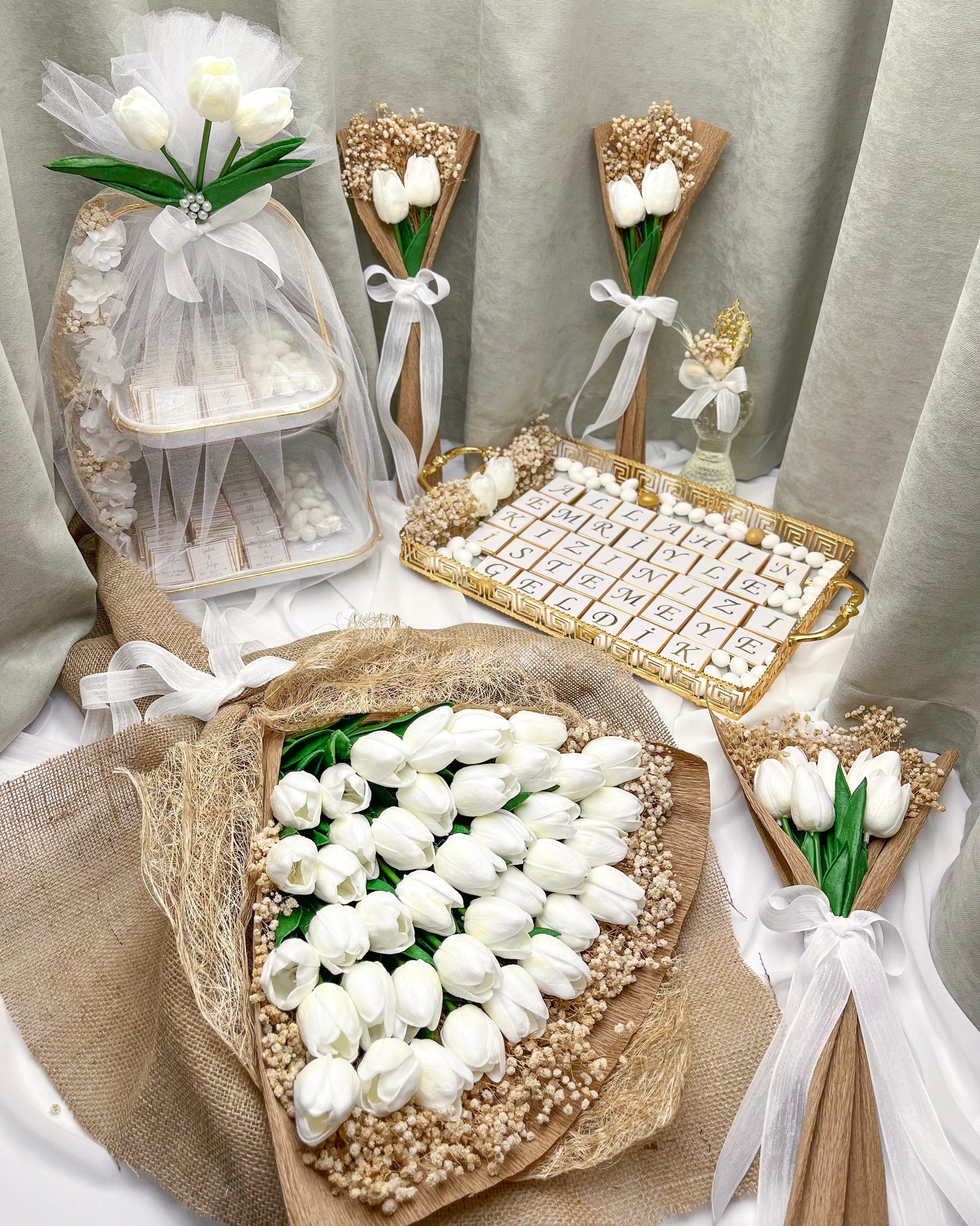 - 40 adet ıslak laleden oluşan hasır lale buketi,